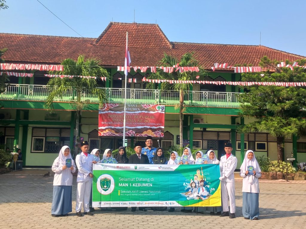 Kebumen – Semangat literasi di MAN 1 Kebumen berbuah manis. Madrasah ini resmi dinobatkan sebagai Sekolah Aktif Literasi Nasional pada momentum peringatan HUT ke-80 Republik Indonesia, Minggu (17/8/2025). Penghargaan diserahkan secara simbolis oleh kepala perpustakaan kepada Kepala MAN 1 Kebumen usai upacara bendera di lapangan madrasah.