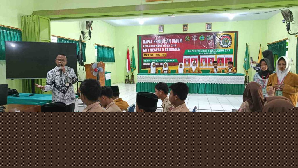 MTs Negeri 5 Kebumen kembali meneguhkan komitmennya dalam menanamkan nilai-nilai demokrasi di lingkungan pendidikan. Pada Sabtu, 25 Oktober 2025, madrasah ini menggelar puncak kegiatan Pemilihan Ketua dan Wakil Ketua Organisasi Siswa Intra Madrasah (OSIM) periode 2025/2026. Bertempat di aula madrasah, suasana pemungutan suara berlangsung semarak dan penuh antusiasme dari seluruh siswa kelas VII, VIII, dan IX.