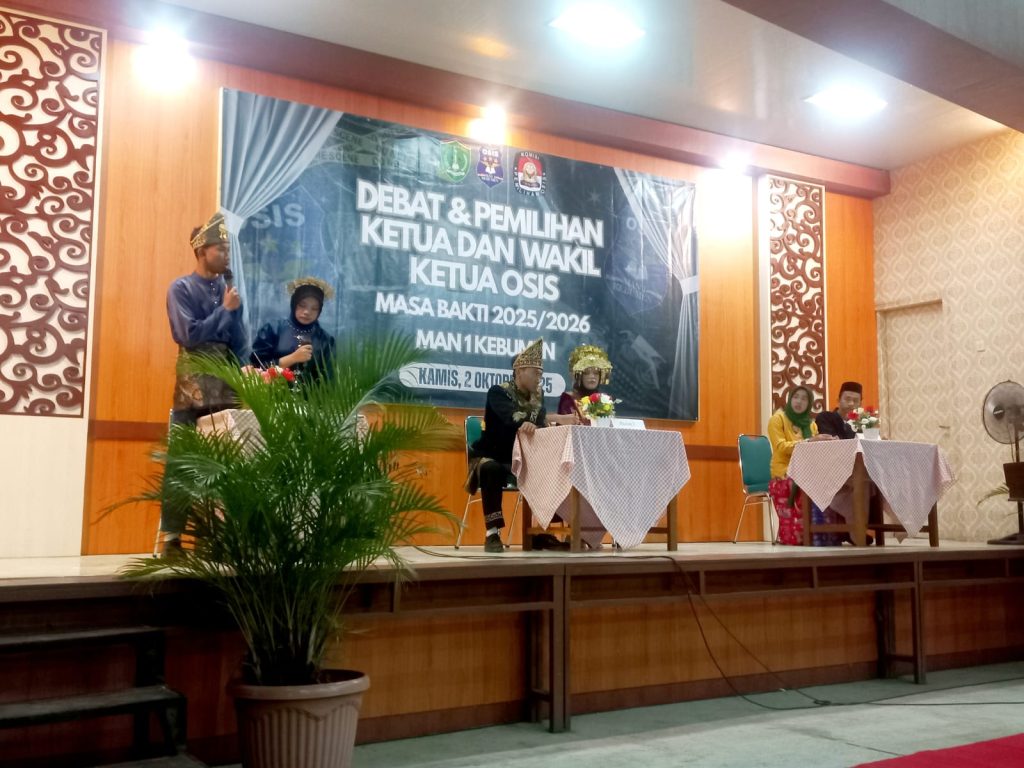 - Kebumen News, 2 Oktober 2025 – Suasana lapangan indoor MAN 1 Kebumen pada Kamis pagi itu berbeda dari biasanya. Dentuman gending Kebo Giro mengiringi langkah para kandidat OSIS yang berjalan bak tokoh penting menuju panggung demokrasi. Sementara di sisi panggung, para penari ekstra tari tampil anggun sebagai cucuk lampah, menambah nuansa sakral dan budaya dalam pesta demokrasi siswa tahun ini.